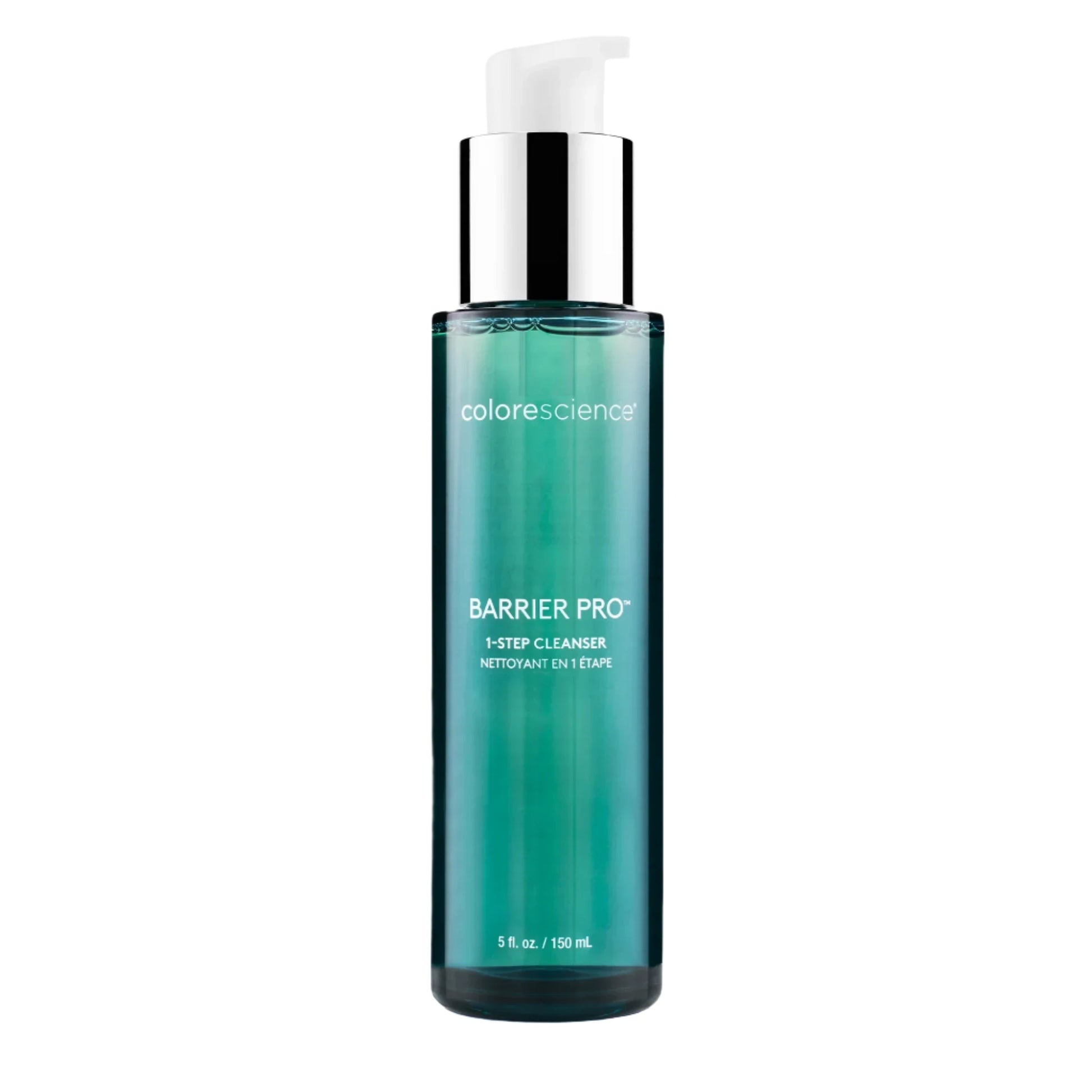 Colorescience Barrier Pro 1-Step Cleanser is formulated to remove makeup and mineral sunscreen in a single step – no need to double cleanse! A multi-benefit skin barrier-boosting solution, this more-than-a-cleanser helps support skin’s microbiome and promotes gentle exfoliation for a softer, smoother skin texture without harsh ingredients.  This fragrance-free, non-comedogenic, patent pending formula lightly lathers and rinses clean without leaving skin feeling stripped. Skin is refreshed, hydrated, and replenished.